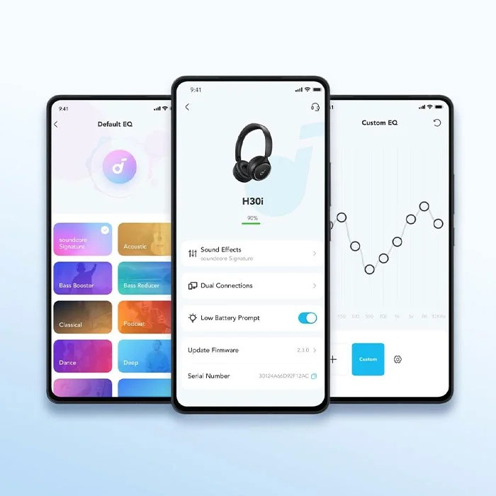 هدست انکر مدل H30i با ارائه اپلیکیشن اختصاصی Soundcore، امکانات گستردهای را برای سفارشیسازی تجربه شنیداری کاربران فراهم میآورد. این اپلیکیشن به شما اجازه میدهد تا تنظیمات اکولایزر را به دلخواه خود تغییر دهید و صدای هدست را مطابق با سلیقه شخصیتان تنظیم کنید. علاوه بر این، امکان استفاده از صداهای سفید برای آرامش و تمرکز بهتر نیز در دسترس است، که این ویژگی برای کاهش استرس و ایجاد یک فضای آرامشبخش بسیار مؤثر است. اپلیکیشن Soundcore با ارائه این تنظیمات، به کاربران امکان میدهد تا هر بار تجربهای کاملاً شخصیسازی شده و دلنشین از استفاده از هدست خود داشته باشند.