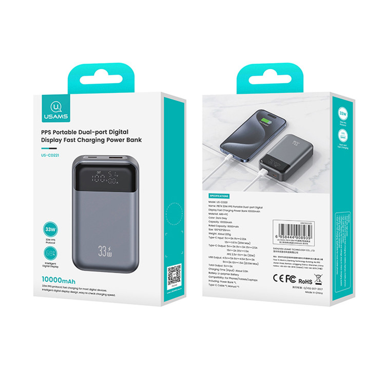 پاوربانک 10000 میلی آمپر 33 وات یوسمز مدل CD221 دقیقا همان چیزی می باشد که شما می خواهید.این پاوربانک فست شارژ دارای دو خروجی می باشد که که یکی از آن ها پورت USB و دیگری پورت تایپ سی (usb-c) است.