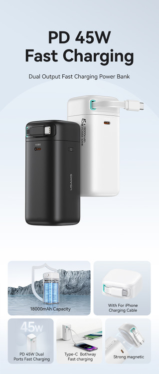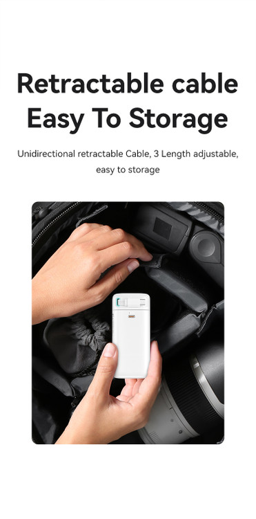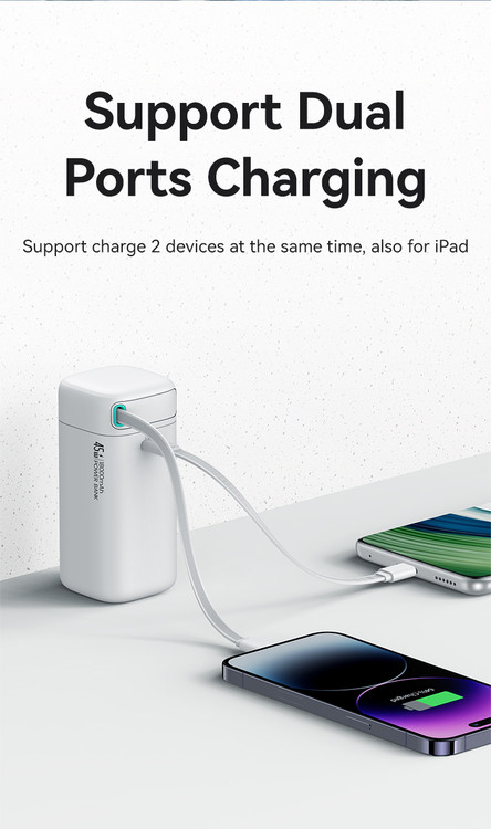سیم جمع شونده برق موبایل، ذخیره سازی نامرئی صرفه جویی در فضا بیشتر است مفهوم مدولار، شارژ شوندگی مجدد رایگان، آماده شارژ در هر زمان PD 45W با قدرت بالا مناسب برای لپ تاپ، تبلت، تلفن همراهبا قابلیت فست شارژ کابل Type-C شارژ سریع دو طرفه، شارژ خودکار سریع شارژ سریع مستقل دو پورت، شارژ راحت و سریع با سریِ جدا شونده جهت حمل آسان با قابلیت شارژ سریع شارژر همیشه در دسترس هست! قدرت شارژ سریع 45 واتی را با سرعتی چشمگیر تامین میکند و به شما این امکان را میدهد تا بدون نگرانی در مورد تخلیه باتری از عملکرد کامل لذت ببرید. PD و خروجیهای دوگانه را کشف کنید که دستگاههای شما را همیشه آماده کار میکند، هر کجا که میروید. صرف نظر از شدت استفاده از گوشیهای هوشمند، تبلتها یا سایر گجتها، این پاوربانک پیشرفته انرژی این شارژر را به یک لوازم جانبی شخصی سازی شده متناسب با نیازهای شما تبدیل می کند. به خصوص طراحیه منحصر به فرد کابل تاشو USB-C طراحی ماژولار مبتکرانه ای که به شما امکان می نه تنها عملکرد، بلکه راحتی ذخیره سازی و حمل را نیز فراهم نمایید. دور از دید جمع می شود و در صورت نیاز به سادگی آن را باز کنید. سازش بین عملکرد و زیبایی شناسی اکنون امکان پذیر است و کابل تاشو عنصر منحصر به فردی است که بر مدرن بودن این پاوربانک تأکید می کند. این پاوربانک با قدرت شارژ چشمگیر 45 وات، انرژی را با سرعتهای بسیار سریع ارائه میکند و انتظارهای طولانی برای شارژ کامل باتری را از بین میبرد. شارژ سریع دستگاه ها در حال تبدیل شدن به یک استاندارد است و وقتی مطمئن باشید که حتی یک لحظه اتصال کوتاه برای تامین انرژی دستگاه های شما برای مدت طولانی تری کافی است، تحرک معنای جدیدی پیدا می کند با ظرفیت 18000 میلی آمپر ساعت، این منبع تغذیه قابل حمل نگرانی از تمام شدن آب دستگاه شما در لحظات مهم را از بین می برد و استفاده طولانی مدت را تضمین می کند. برای مسافران، کارگران از راه دور یا علاقه مندان به فضای باز،این پاوربانک تضمین می کند که انرژی شما را حتی در سخت ترین شرایط تمام نمی کند. کابل تاشو، قلاب های مغناطیسی، طراحی جمع و جور – این ویژگی ها استفاده از این پاوربانک را نه تنها راحت، بلکه ذخیره و حمل آن را نیز آسان می کند. آماده است تا هر زمان که به آن نیاز داشتید اقدام کنید.