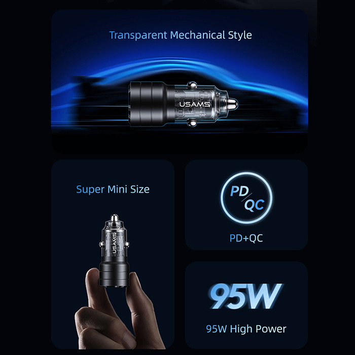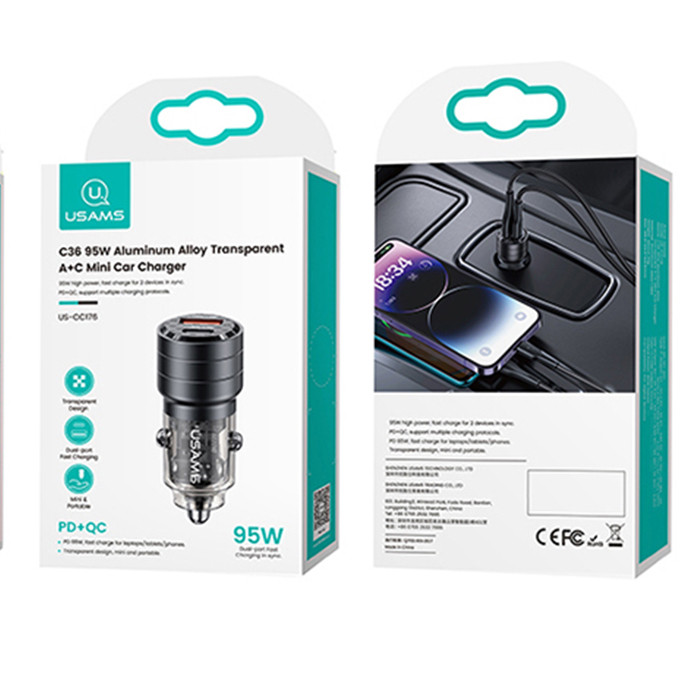 USAMS US-CC176 C36 95W Usb-a + Usb-c Fast Car Charger