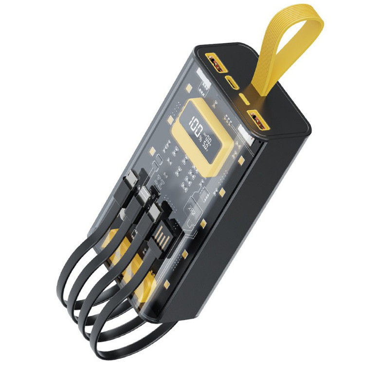 دارای باتری لیتیوم پلیمری با ظرفیت 20000 میلی آمپر ساعت، شارژ مجدد پاوربانک توسط درگاه تایپ سی (مشترک) و کابل همراه