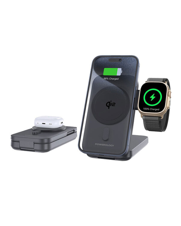 شارژ بیسیم MagSafe: این پاوربانک از فناوری MagSafe برای شارژ بیسیم سریع و ایمن iPhone ۱۵ و سایر دستگاههای سازگار با MagSafe پشتیبانی میکند. شارژ سریع ۱۵ و ۲۰ واتی: با استفاده از پورت USB-C تا ۲۰ وات و وایرلس مگ سیف تا ۱۵ وات، میتوانید گوشیهای هوشمند خود را شارژ کنید. شارژ بیسیم ۳ واتی: میتوانید ساعتهای هوشمند خود را نیز به صورت بیسیم با سرعت ۳ وات شارژ کنید. سیستم خنککننده فعال: سیستم خنککننده فعال این پاوربانک، از گرم شدن بیش از حد آن در هنگام شارژ سریع جلوگیری میکند و عمر مفید باتری را افزایش میدهد. پایه تاشو: پایه تاشو این پاوربانک، استفاده از آن را در هنگام شارژ گوشی خود آسان میکند. طراحی باریک و سبک: این پاوربانک با طراحی باریک و سبک، به راحتی در کیف یا جیب شما جای میگیرد و برای حمل و نقل آسان است