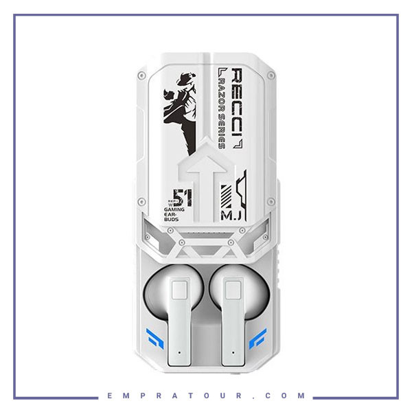 با هندزفری وایرلس جدید Recci REP-W51 RAZOR به حال و هوای بازی های کامپیوتری قدم خواهید نهاد. Recci بهترین کیفیت صدا را با یک طراحی درخشان در کنار ویژگی های پیشرفته در هم آمیخته و به شما ارائه نموده است. جعبه فلزی با افکت های LED و حالت کشویی باز شدن با تکیه بر ارگنومی خارق العاده و بدنه ای از جنس ABS در دو رنگ سفید و مشکی به کار رفته در گوشی ها چشم ها را به خود خیره می کند. این در کنار استفاده از میکروفون های دوگانه بسیار دقیق و کیفیت صدای خروجی یک گزینه خاص را در پیش روی شما قرار می دهد.