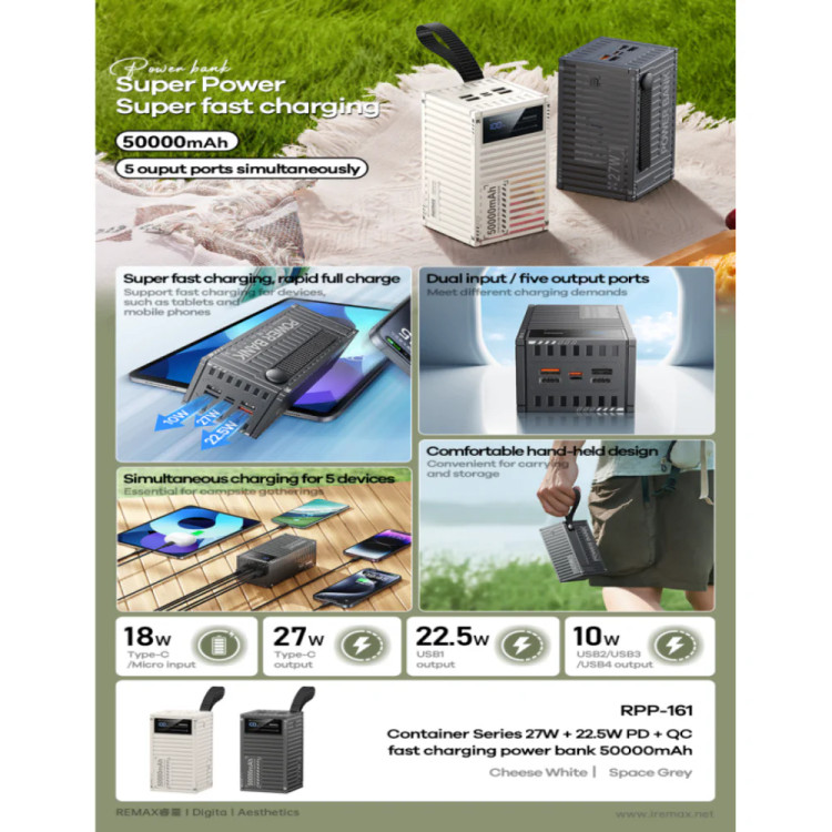 New REMAX RPP-161 Container Series 50000mAh PD+QC Power Bank(PD 27W+ QC22.5W)
