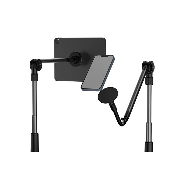 این پایه نگهدارنده مجهز به 16 آهنربای قوی است که به شما اطمینان میدهد گوشی یا تبلت شما بهصورت محکم و ایمن در جای خود باقی بماند. این آهنرباها با قدرت بالای خود قادرند دستگاههای تا وزن 700 گرم را بهخوبی نگهداری کنند. - طراحی قابل تنظیم و طول متغیر: