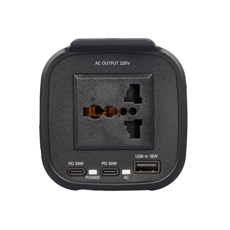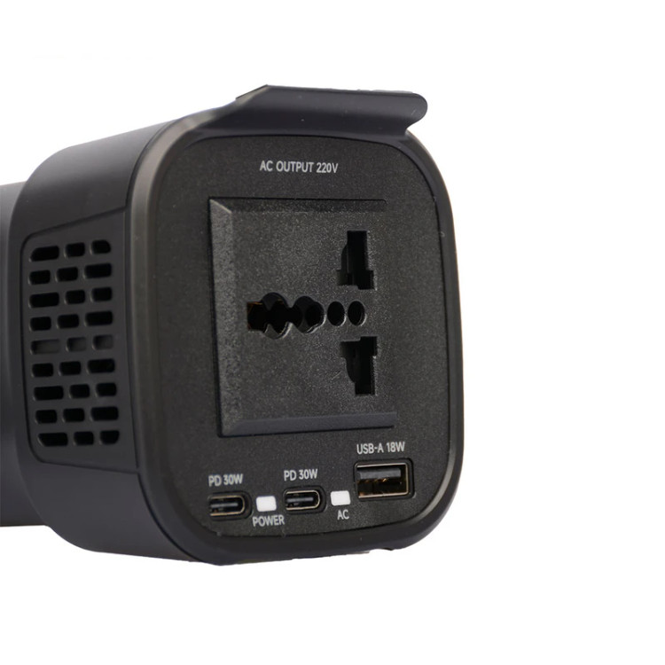 - پورتهای متنوع: علاوه بر خروجی برق شهری، اینورتر دارای دو پورت USB-C با توان 30 وات و یک پورت USB-A با توان 18 وات است که امکان شارژ سریع و همزمان چندین دستگاه را فراهم میکند.
