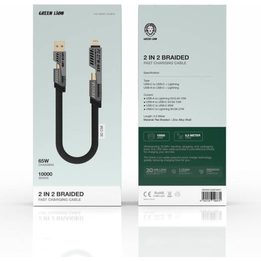 Green Lion 2 in 2 Braided Fast Charging Cable
