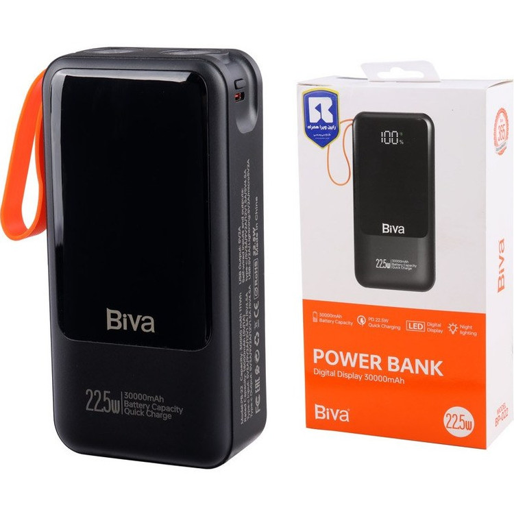 پاوربانک 30000 بیوا Biva BP-022 Power Bank Digital Display توان 22.5 وات همراه با کابل متصل
