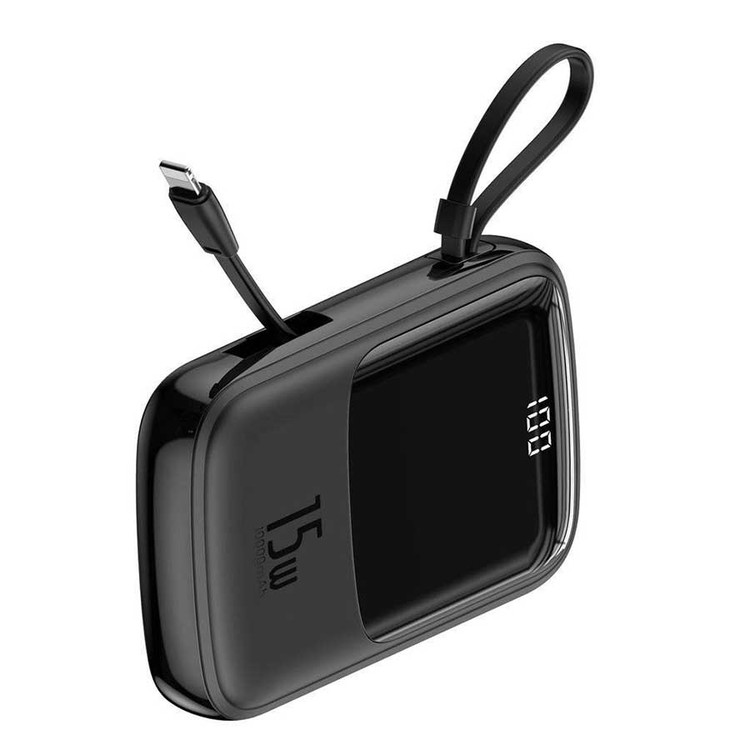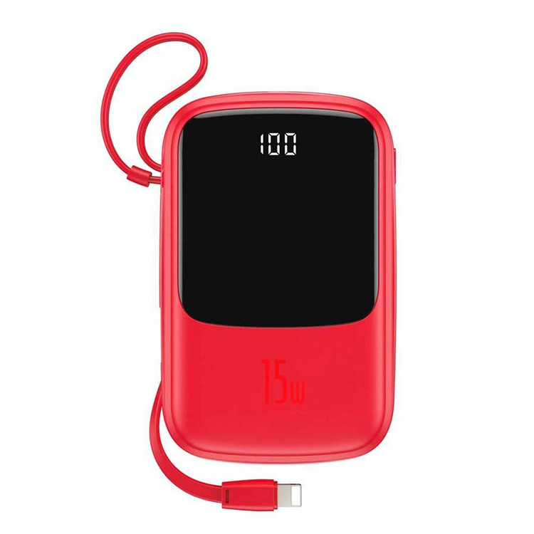 پاوربانک بیسوس مدل Qpow PPQD-B01 15W ظرفیت 10000mAH همراه کابل متصل لایتنینگ