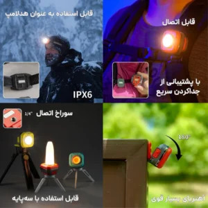 این چراغ کوچولو، چندمنظوره هس و برای ماجراجوییهای شبانه دستیار خوبیه. یه پایه پشت چراغ هس که بهتون اجازه میده به روشهای مختلفی از چراغ استفاده بکنی: