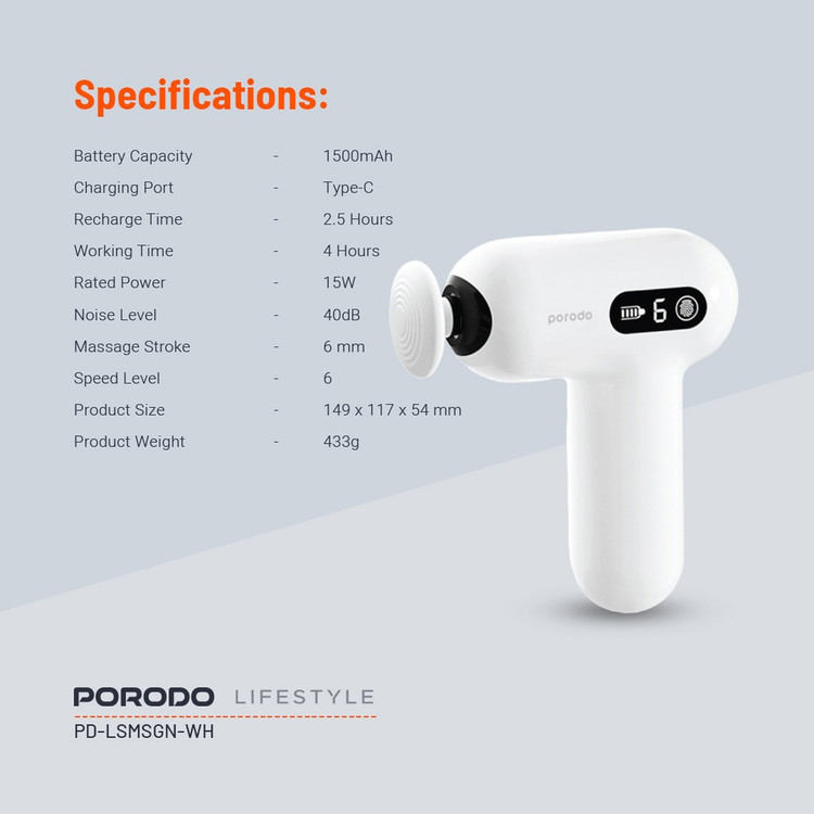 ماساژور تفنگی قابل شارژ پورودو PD-LSMSGN (رنگ شیری)
