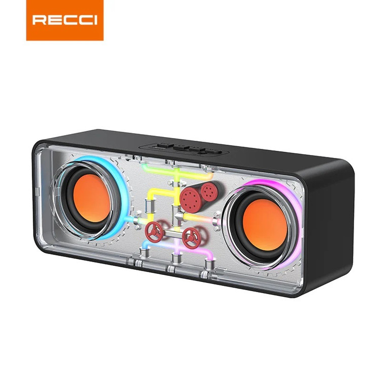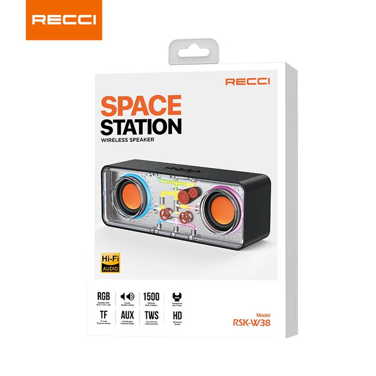 امروزه بر اساس نیاز مردم به گوش دادن آهنگ کمپانی های مختلف شروع به تولید انواع اسپیکر کردند؛ بعد از اسپیکرهایی که مستقیم به پریز برق وصل میشد و امکان استفاده از آن ها در هر مکانی وجود نداشت، اسپیکر بی سیم وارد بازار شد تا این امکان را به شما بدهند که در هر جایی بتوانید به موزیک های مورد علاقه خود گوش دهید. از جمله این کمپانی ها، کمپانی بزرگ رسی بود که اسپیکر بلوتوثی قابل حمل رسی Recci RSK-W38 Space Station Series RGB LED Lighted Bluetooth Speaker را وارد بازار کرد.