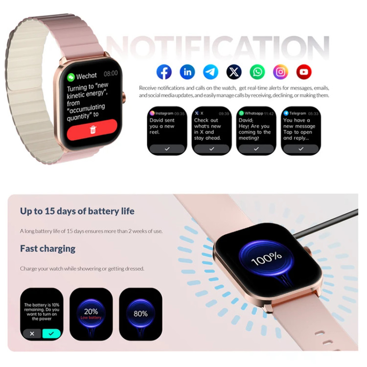 همراه با دو نوع بند: بند مغناطیسی (یا استیل مغناطیسی) و بند سیلیکونی مایع برای راحتی در استفاده روزمره