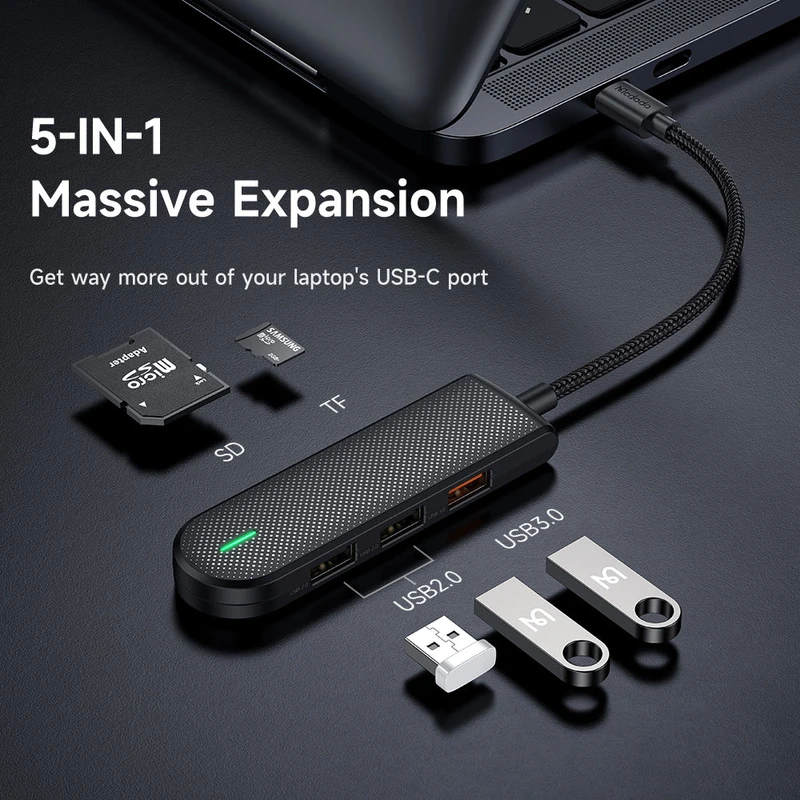 کانکتور هاب Mcdodo HU-1430 دارای پنج پورت خروجی شامل دو پورت USB 2.0 (با سرعت 480Mbps)، یک پورت USB 3.0 (با سرعت 5Gbps)، یک پورت میکرو اس دی و یک پورت اس دی است.