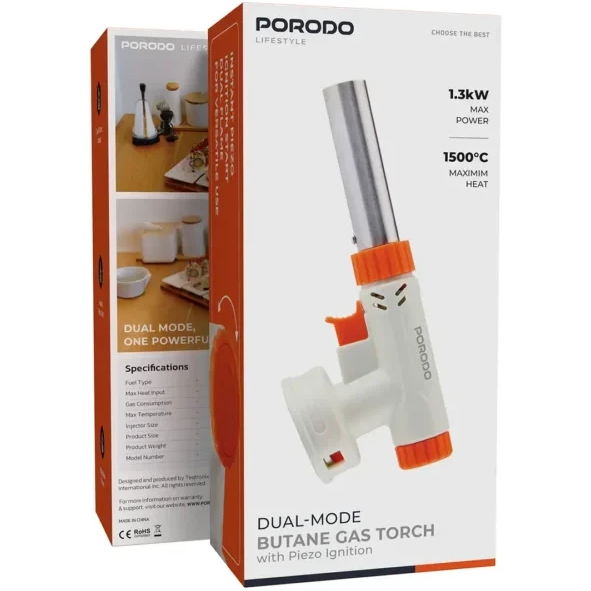 مشعل گاز بوتان Porodo Lifestyle Dual-Mode انتخابی ایدهآل برای افرادی است که به دنبال ابزاری قدرتمند، قابلاعتماد و چندکاره هستند. این مشعل با دو حالت شعله و جرقهزنی پیزوالکتریک فوری، گرمایی سریع و یکنواخت را تنها با یک فشار فراهم میکند.