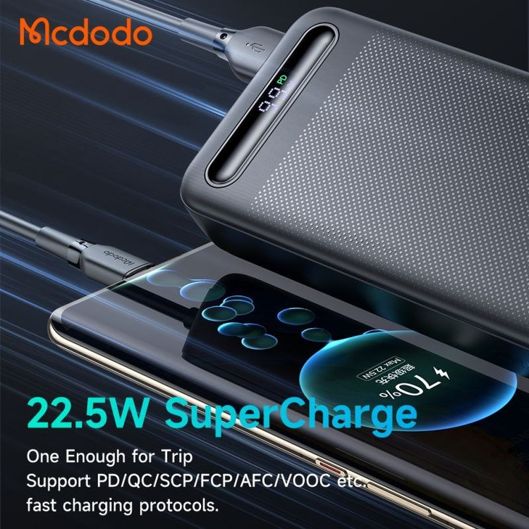 حداکثر خروجی پاوربانک مک دودو Mcdodo MC-3890 برابر 22.5 وات است. جریان/ولتاژ خروجی های مختلف به شرح زیر است: