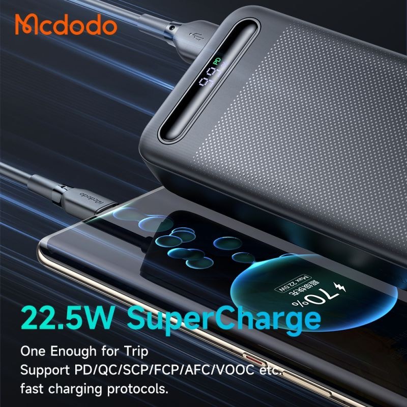 پاوربانک Mcdodo MC-3890 دارای ظرفیت اسمی به اندازه 20000 میلی آمپرساعت است. البته حتما در نظر داشته باشید ظرفیت اسمی با توجه به ولتاژ شارژ گوشی شما تغییر می کند. شما علاوه بر تلفن همراه، اسمارت واچ، تبلت و هندزفری بلوتوثی خود را نیز می توانید با آن شارژ کنید.
