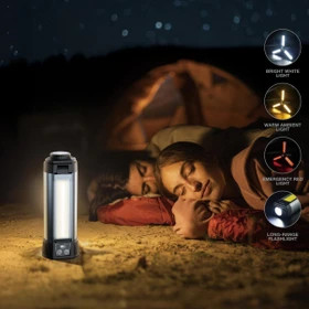 طراحی تلسکوپی با قابلیت افزایش ارتفاع تا 120 سانتی متر و پنل قابل چرخش این امکان را می دهد که نور دقیقا روی نقطه مورد نظر شما متمرکز شود. وجود درگاه شارژ Type-C، نمایشگر دیجیتال میزان باتری و قابلیت پاوربانک اضطراری، این چراغ کمپینگ را به گزینه ای بسیار کاربردی برای سفر، کمپینگ و طبیعت گردی تبدیل کرده است.