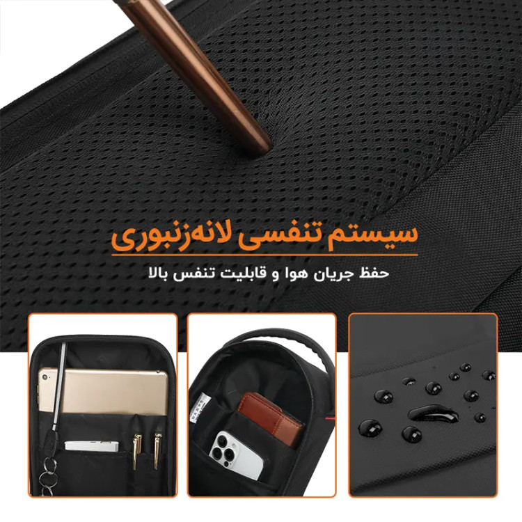 پشت کیف بیوا Bag-06 مجهز به سیستم تهویه لانهزنبوری است که با طراحی خاص خود، گردش هوا را تسهیل کرده و مانع از تعریق پشت بدن در استفادههای طولانیمدت میشود. این ساختار باعث افزایش راحتی در حمل کیف، بهویژه در روزهای گرم یا هنگام پیادهرویهای طولانی میشود و تجربهای مطلوبتر برای کاربر فراهم میآورد.