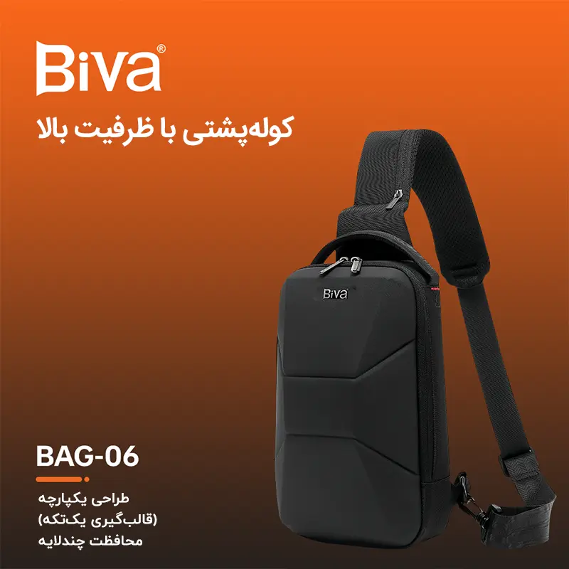 کیف یک طرفه Biva Bag-06 با استفاده از فناوری قالبگیری یکپارچه ساخته شده که علاوه بر زیبایی ظاهری، مقاومت بالایی در برابر ضربه و فشار ایجاد میکند. این ساختار باعث افزایش دوام کیف در استفادههای روزمره و شرایط مختلف محیطی میشود و خیال کاربر را از بابت کیفیت ساخت راحت میکند.